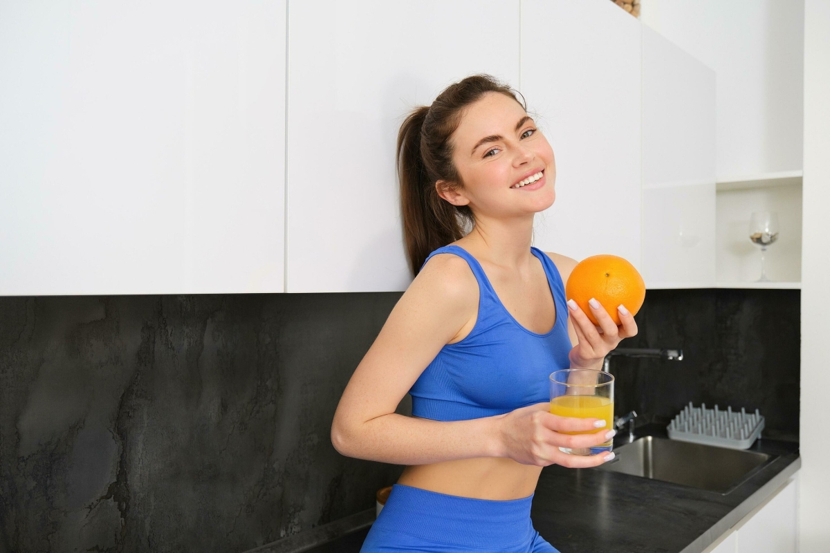 Cam chứa nhiều vitamin C – thành phần quan trọng cho việc sản xuất collagen và giảm stress oxy hoá. Bài nghiên cứu này đã được công bố trên Tạp chíỨng dụngChâu Âu vềSinhhọc ghi nhận người tập luyện bổ sung 500 mg vitamin C mỗi ngày giảm tới 15% tổn thương cơ. Nên uống nước cam tươi không đường hoặc ăn một quả cam sau khi tập luyện.