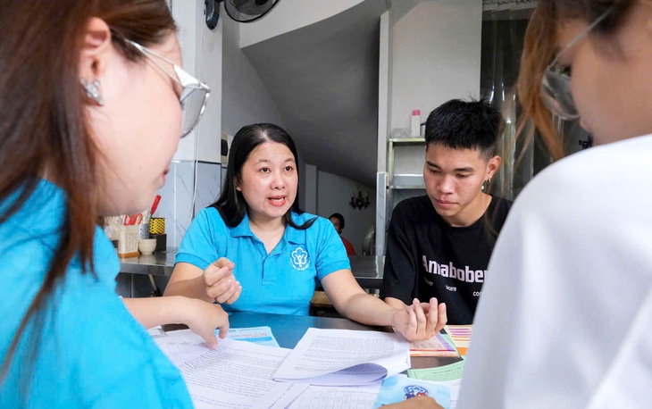 Tại một quán bánh xèo ở phố Đội Cấn (Hà Nội), nhóm cán bộ của BHXH Ba Đình tư vấn mức đóng, quyền lợi cho đôi bạn trẻ Mai Thị Thu Hoài (20 tuổi) - Vũ Xuân Mạnh (21 tuổi). Hoài chia sẻ do chưa tham gia BHXH bao giờ, mới kinh doanh nên phải mất khoảng 20 phút để hiểu chế độ như thai sản.